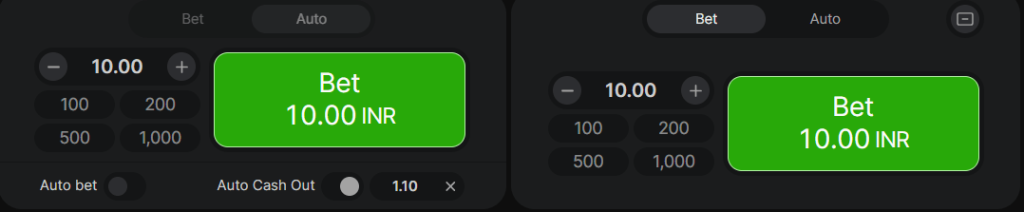 The Auto Cash Out feature automatically leaves the game at a pre-chosen multiplier. This feature allows players to avoid missing the right cash-out point.