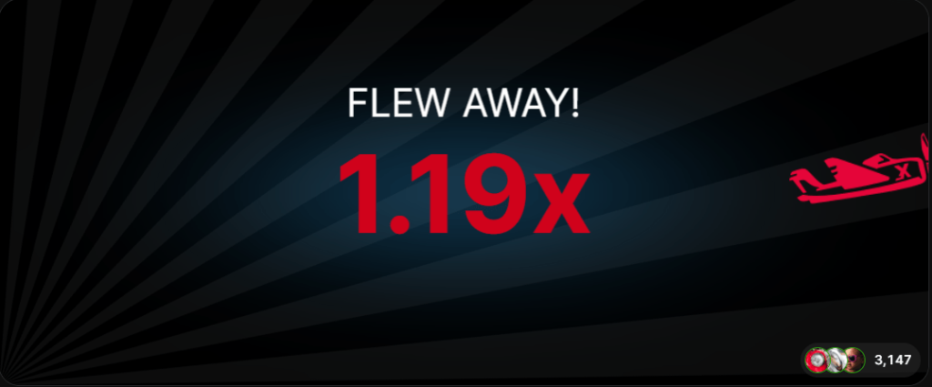 The plane can fly away at any point, including 1.00x. When this occurs, the multiplier immediately stops increasing. Any players who do not cash out before the crash lose their bet.