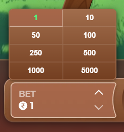 Use the up and down arrows in the betting field to select your bet size. Choose an amount between ₹1 and ₹5000.