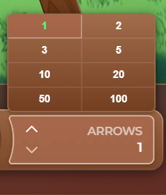 You can also select between 1 and 10 arrows for each round. The more arrows you select, the more multipliers you earn. But remember that your bet amount is applied to every arrow you select.