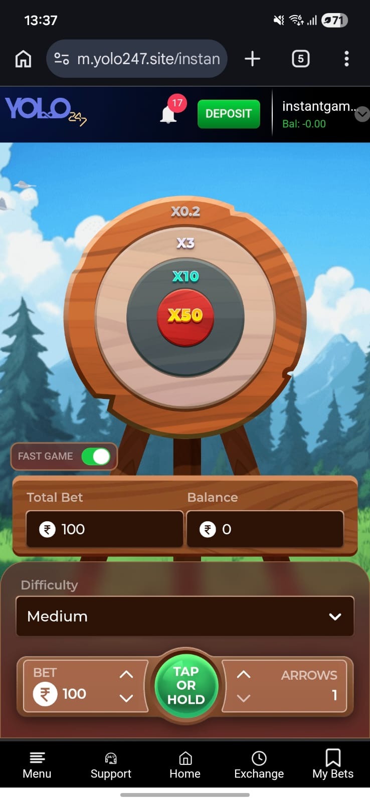 For instance, if your bet amount is ₹1 and you want to shoot 5 arrows, your total bet for that round is ₹5.