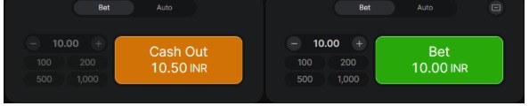 जैसे ही गेम शुरू होता है, “बेट” बटन बदलकर “कैश आउट” बन जाता है। यह बटन मल्टीप्लायर के साथ आपकी जीत की राशि दिखाता रहता है।