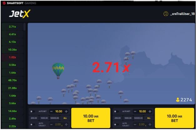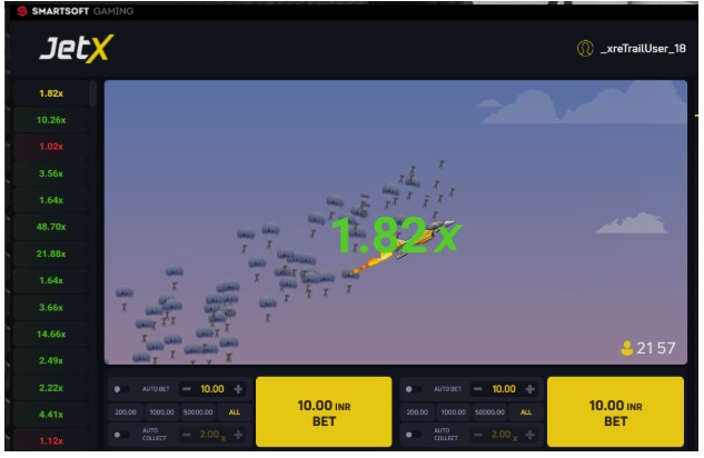 जेटएक्स एक तेज़ गति वाला ऑनलाइन क्रैश गेम है, जिसे स्मार्टसॉफ्ट गेमिंग ने बनाया है। इस गेम में खिलाड़ी बढ़ते हुए मल्टीप्लायर पर दांव लगाते हैं और वर्चुअल जेट के फटने से पहले अपनी जीत की राशि निकालते हैं।