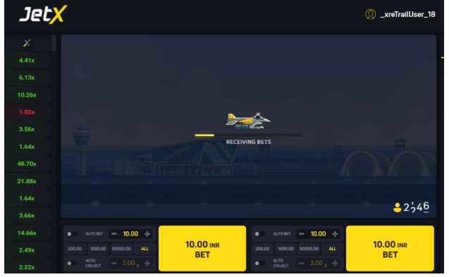 राउंड शुरू होने से पहले अपनी शर्त लगाएँ। जैसे ही जेट उड़ता है, मल्टीप्लायर बढ़ता जाता है। सही समय पर अपनी जीत की राशि निकालें ताकि नुकसान से बचा जा सके।