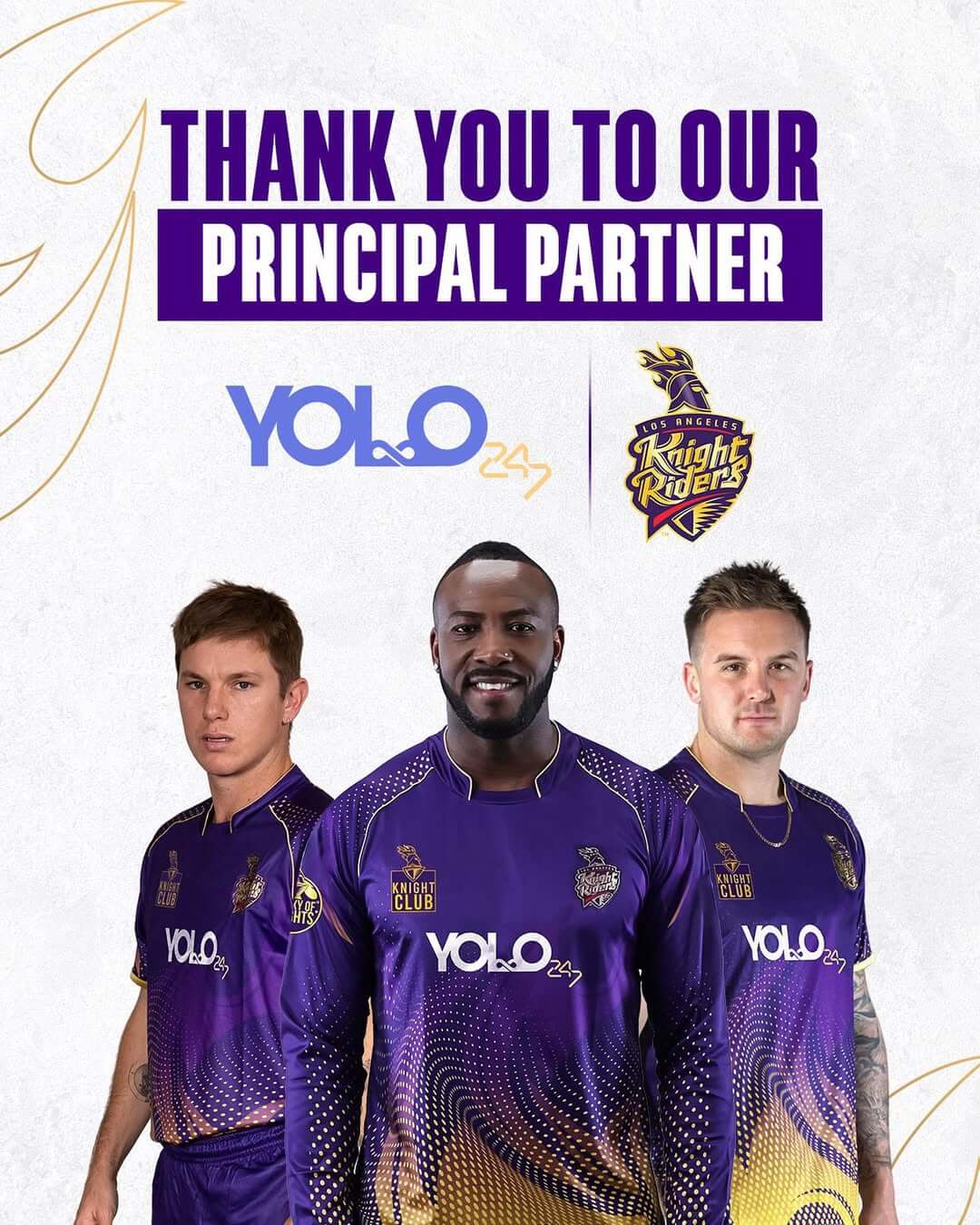 Yolo247 was the “Principal Sponsor” for the Los Angeles Knight Riders during Major League Cricket. The team proudly wore the jersey with the Yolo247 logo at the center on the front side.